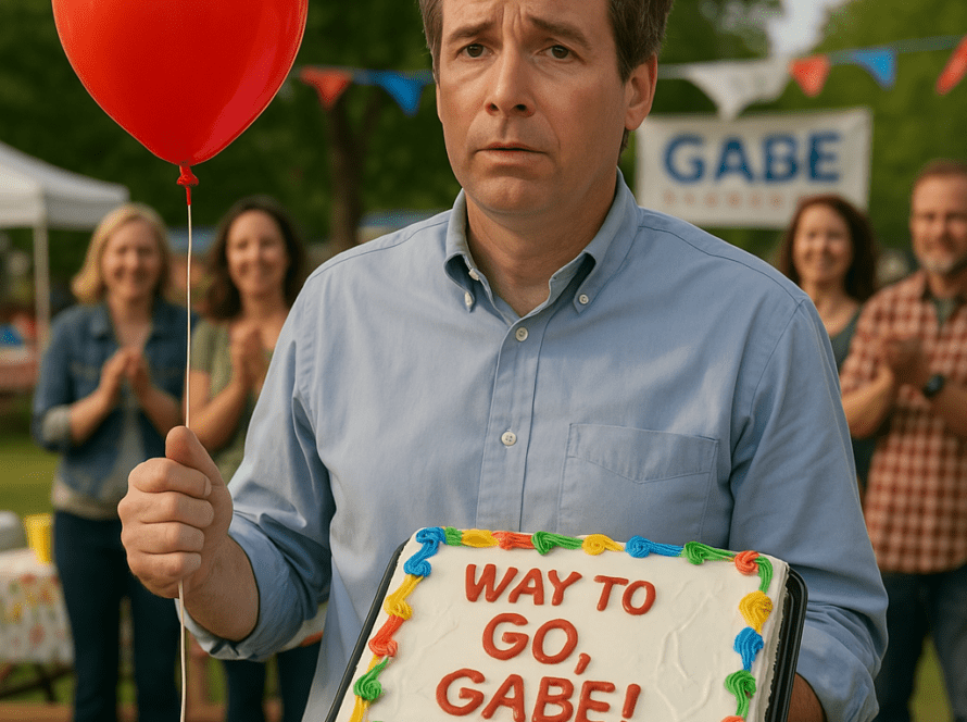 Despite the confusion, Gabe’s visit ended on a high note when he bought three ears of corn, complimented a stranger’s dog, and declared, “I’m not lost, I’m just politically curious.”